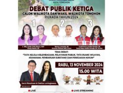 TOMOHON, – Debat Publik Ketiga Pasangan Calon (Paslon) Wali kota dan Wakil Walikota Tomohon tahun 2024 segera dimulai.